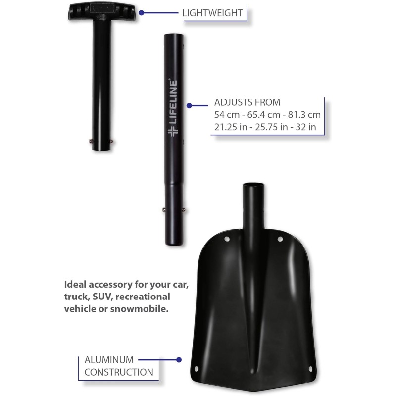 Aluminum Sport Utility Shovel, 3 Piece Collapsible Design, Perfect Snow Shovel for Car, Camping and Other Outdoor Activities, Matte Black