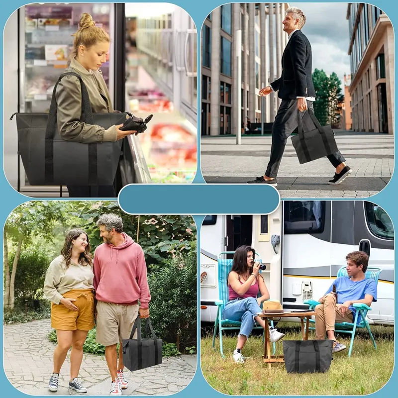 - Our thermal bag is equipped with padded handles that wrap around the base for durability.
